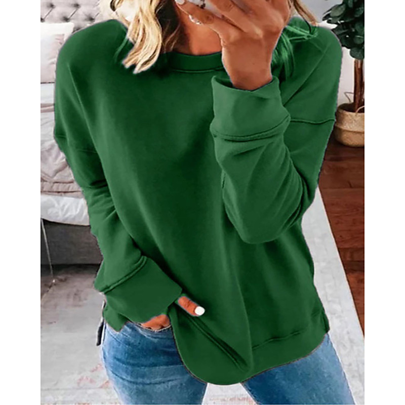 Women's Blouse Plain Vintage Stylish Long Sleeve Crew Neck Regular Tops Daily Holiday Going out Patchwork Black Green Dark Gray Fall Winter