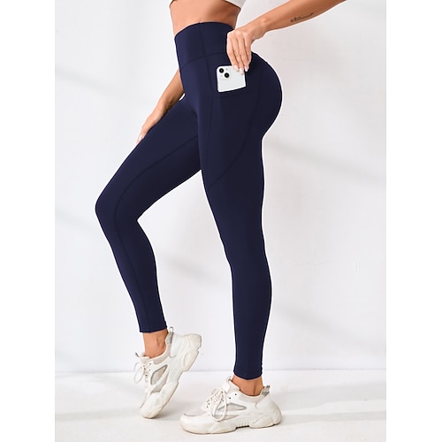 Per donna Pantaloni Leggings Moda Streetwear Essenziale Lunghezza intera Vita Alta Semplice Tasca Elastico in vita Comodità Alta elasticità Quotidiano Palestra Corsa Nero Borgogna Blu marino Verde