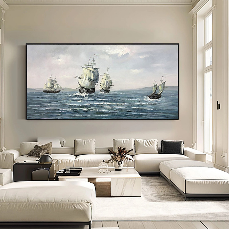 Large Hand Painted Wall Art Sail boat Party Oil Painting Handmade Seascape Texture Painting Art Colorful Boat picture Wall Art Home Decoration Decor Rolled Canvas No Frame Unstretched