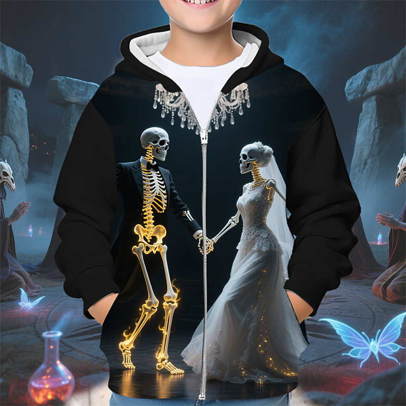 Halloween Boys' 3D Skull Hoodie Coat Outerwear Long Sleeve Spring Fall Adorable Sport Kids 4-12 Years Zip Street Daily Regular Fit
