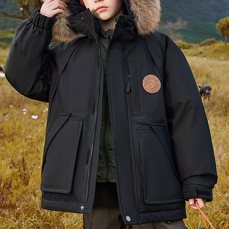 Kids Boys' Down Jacket Outdoor Jacket Puffer Jacket Outerwear Solid Color Long Sleeve Keep Warm Windproof Coat Casual Daily Basic Black Red Green Fall Winter 5 years