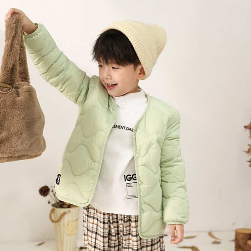 Kids Unisex Down Coat Puffer Jacket Outerwear Solid Color Long Sleeve Pocket Coat Outdoor Daily Black Pink Green Fall Winter 4 years