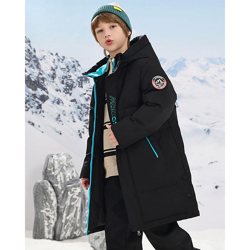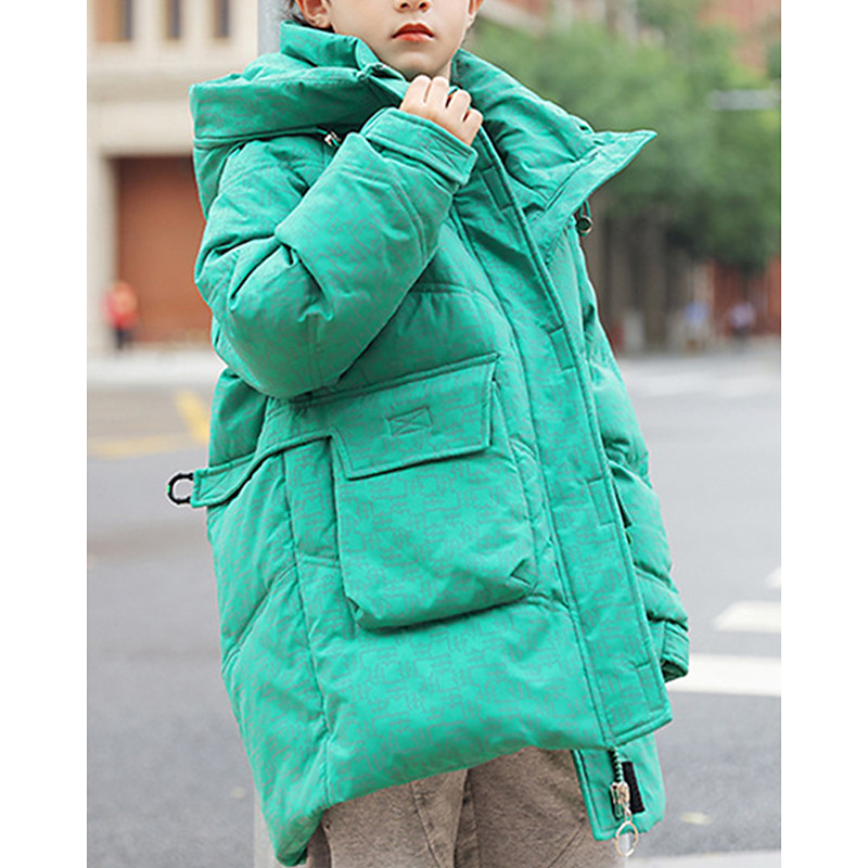 Kids Boys' Down Jacket Hoodie Jacket Puffer Jacket Outerwear Geometric Long Sleeve Pocket Keep Warm Windproof Coat Casual Daily Basic Blue Black Green Fall Winter 4 years