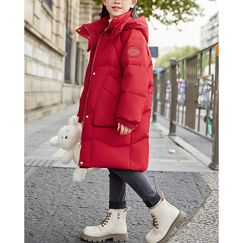 Kids Girls' Down Jacket Puffer Jacket Solid Color Sports Pocket Keep Warm Windproof Outdoor Coat Outerwear 4-12 Years Winter Black Pink Red