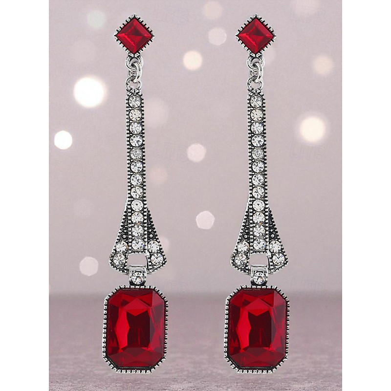 Women's 1920s Gatsby Drop Earrings - Art Deco Long Dangle Earrings with Blue Gemstones and Rhinestones for Roaring Twenties Parties