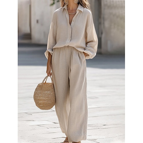 Per donna Moda Streetwear Set di Pantaloni Manica Lunga Scollo a V Tinta unica Coulisse Vacanza Casual Quotidiano Giallo Azzurro cielo Cachi Estate Vestibilità regolare
