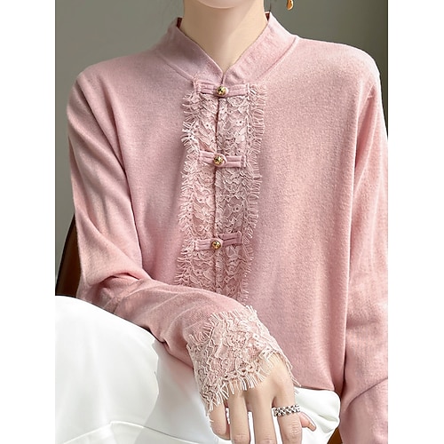 Per donna Blusa Tinta unica Elegante Essenziale Casual Manica Lunga Collo alla coreana Top Regolari Quotidiano Bottoni Nero Bianco Rosa Primavera Autunno Inverno