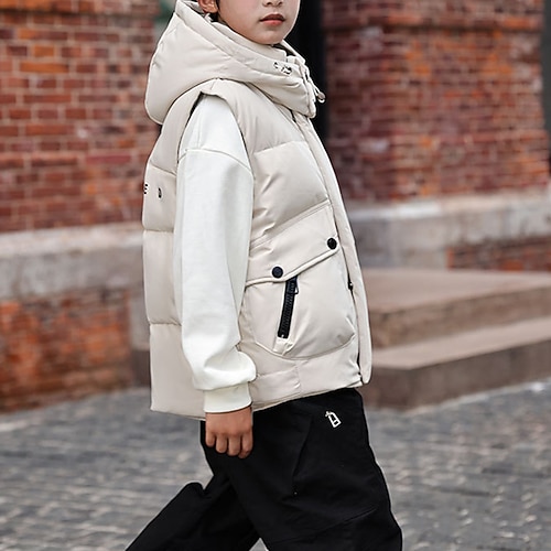 Bambini Unisex Gilet Capispalla Tinta unica Senza Maniche Tenere al caldo Cappotto All'aperto Moda Quotidiano Bianco Cachi Autunno Inverno Dai 4 anni in su