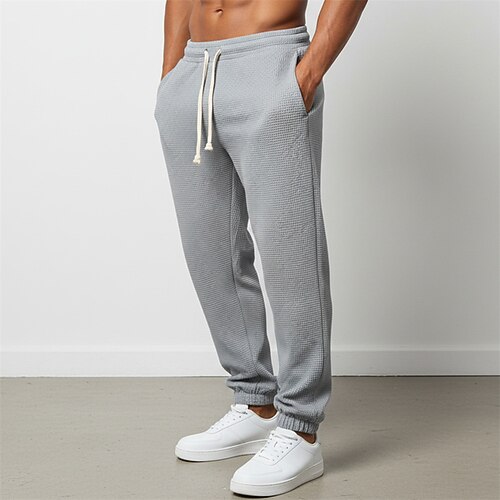 Per uomo Nido d'ape Pantaloni da tuta Joggers Pantaloni Pantaloni casual Coulisse Polsino elastico Tinta unica Comodità Lunghezza intera Quotidiano All'aperto Abbigliamento casual alla moda Vacanza
