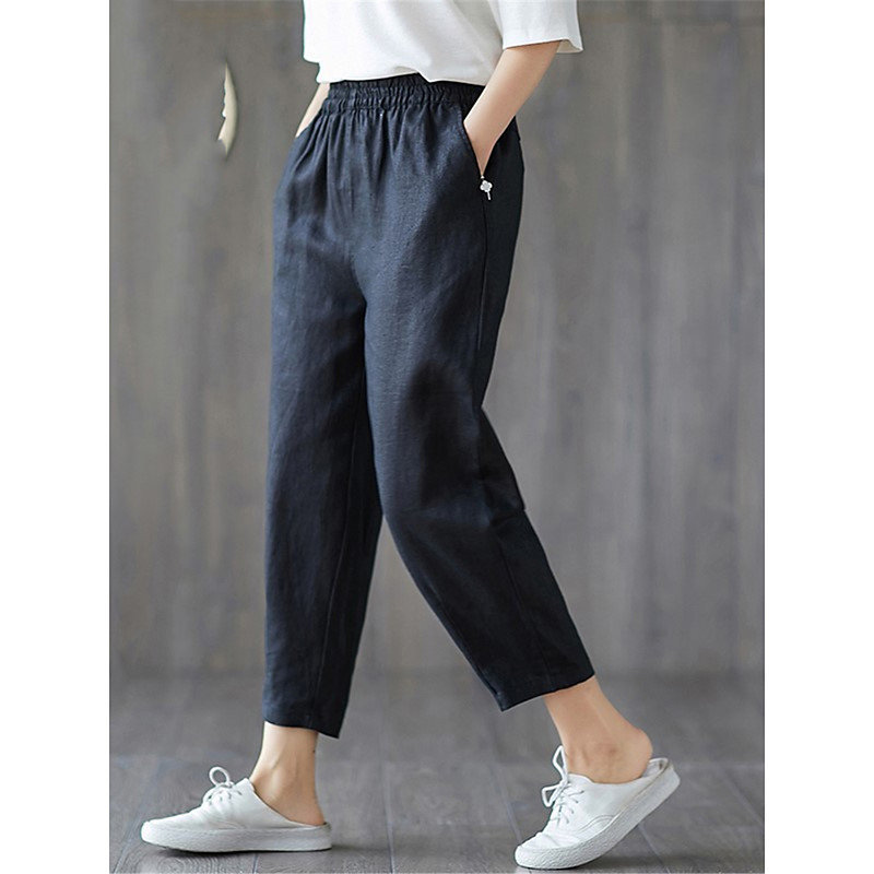 Women's Faux Cotton Linen Capri shorts Baggy Pants Streetwear Casual Comfort Capris Mid Waist Plain Pocket Baggy Elastic Drawstring Design Comfort Breathability Soft Micro-elastic Vacation Casual