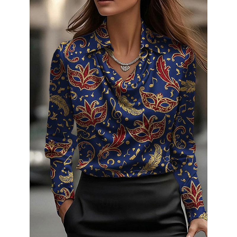 Women's Shirt Button Down Tunic Shirt Collar Long Sleeve Floral Casual Regular Tops Work Daily s Print Red Spring Fall Winter