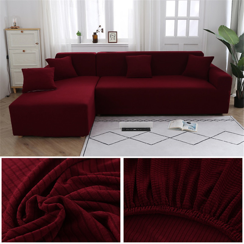 Stretch Sofa Cover Slipcover Jacquard Elastic Sectional Couch Armchair Loveseat 4 or 4 or 3 Seater Burgundy Red L Shape White Grey Black Plain Solid Color Soft Durable Washable(1 Free Cushion Cover)