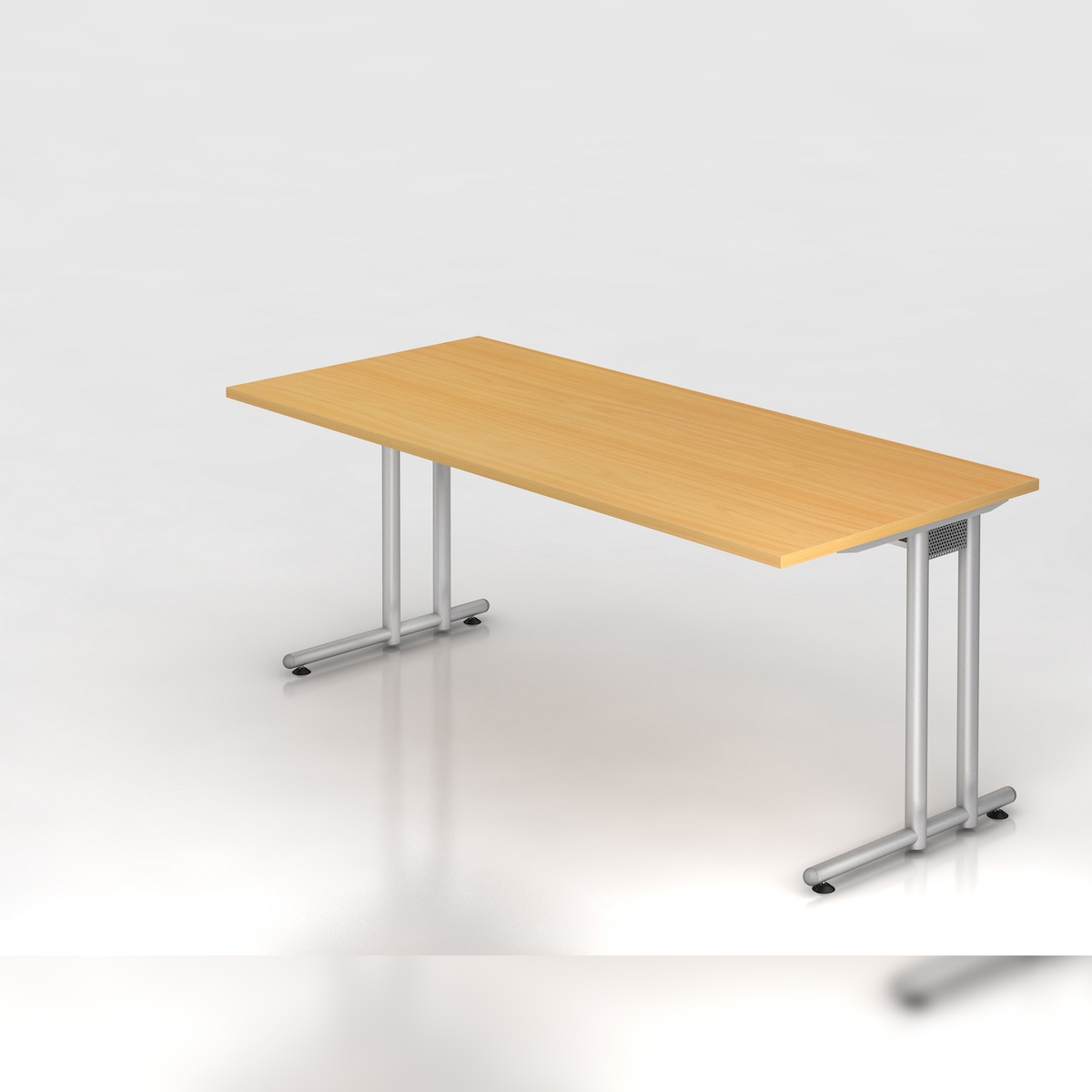PROREGAL Schreibtisch Mauno | Buche | BxT 180x80cm | Arbeitshöhe 72cm | höhenjustierbar 0-10 mm | C-Fuß-Gestell Silber | Bürotisch