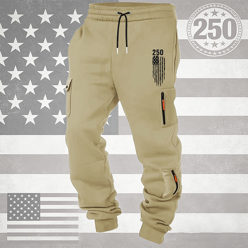 Men's Cargo Sweatpants Sweatpants Joggers Trousers Drawstring Pocket Elastic Waist National Flag Comfort Breathable Daily Outdoor America's 250th Anniversary Vacation Fashion Black White Micro-elastic
