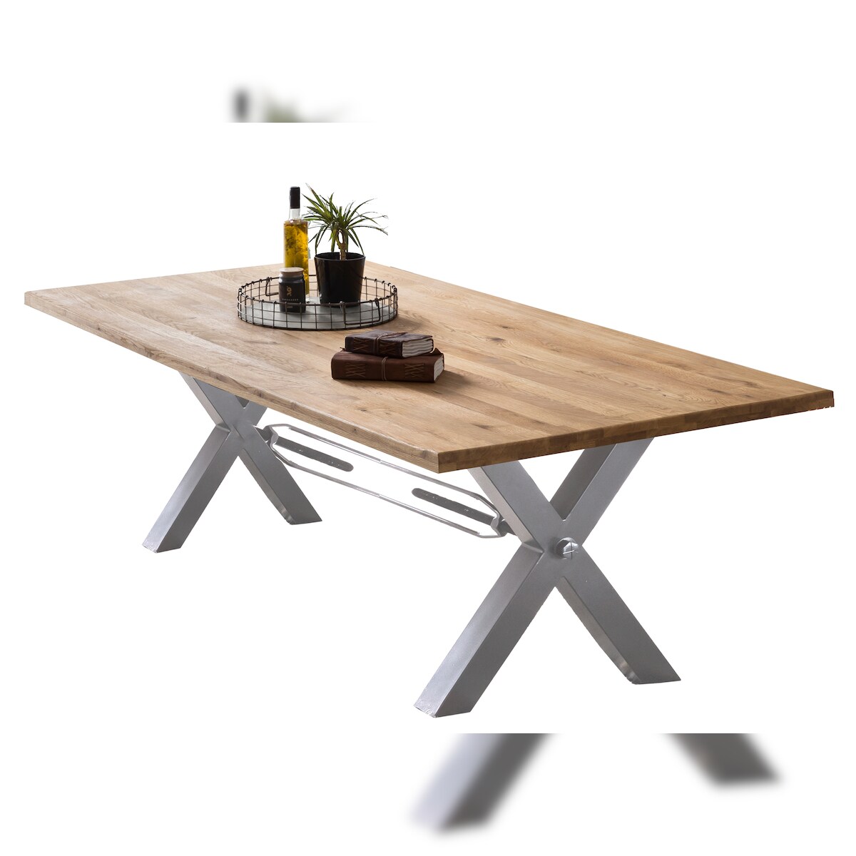 SIT Möbel Esstisch, 220 x 100 cm, 40 mm Platte Wildeiche natur, X-Gestell Metall used look, B 220 x T 100 x H 75 cm, 15212-41, TABLES & CO