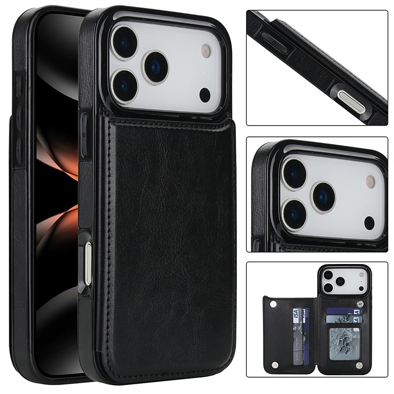 Phone Case For iPhone 17 Pro Max 17 Air Back Cover with Stand Holder Card Slot Shockproof Retro TPU PU Leather