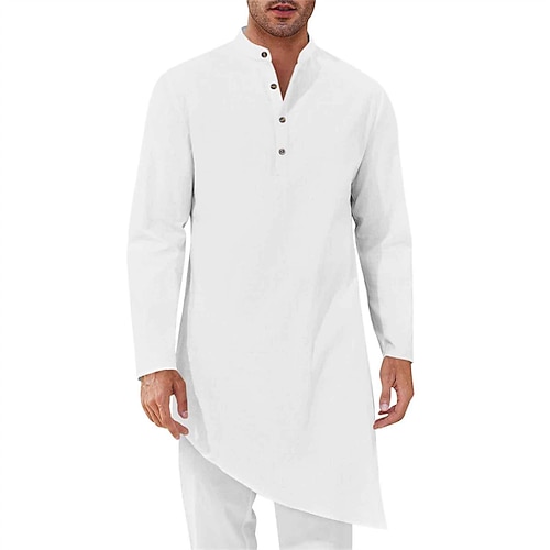 Per uomo Abbigliamento da Casa Camicia da Notte Semplice Elegante Comfort Casa Quotidiano Cotone Traspirante Collo alla coreana Manica Lunga Primavera Autunno Nero Bianco