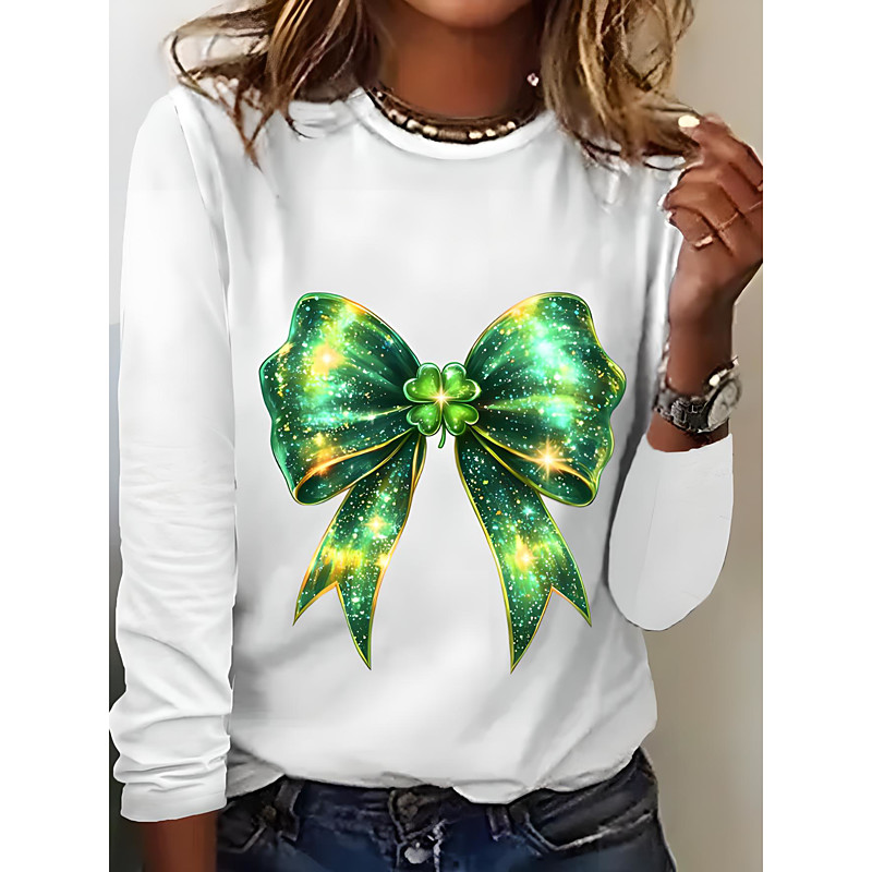 St. Patrick Women's T Shirt Shamrock Plants Casual Long Sleeve Crew Neck Regular Tops Daily Print Black White Blue Khaki Gray Spring Fall