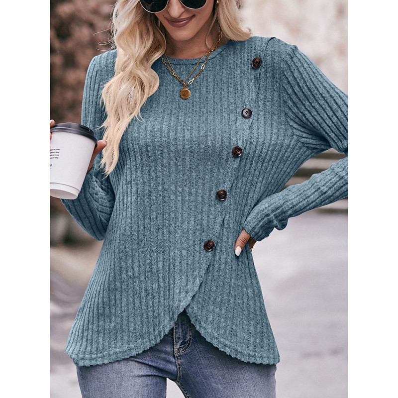 Women's Blouse Solid Color Stylish Casual Long Sleeve Crew Neck Regular Tops Daily Buttons Black Pink Red Blue Spring Fall Winter