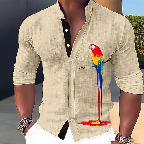 Per uomo Pappagallo Camicia Camicia con Bottoni Manica Lunga Moda Streetwear Designer All'aperto Casuale Quotidiano Estate Primavera Autunno Collo alla coreana Stampato Nero Bianco Blu Verde Cachi