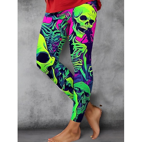 Leggings da donna vacanza moda vintage alla caviglia vita alta grafica teschio stampa morbida traspirante elastica vacanza strada casual bianco blu verde khaki primavera autunno inverno slim fit
