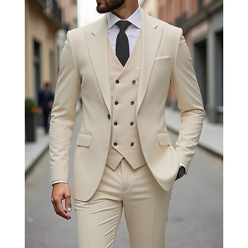Herren Blazer Weste Anzughose Blazer Geschäft Arbeit Hochzeit Mode Streetwear Herbst Winter Terylen Einfarbig 3 Teile Einreihig Blazer Schwarz Champagner Rosa Burgunderrot