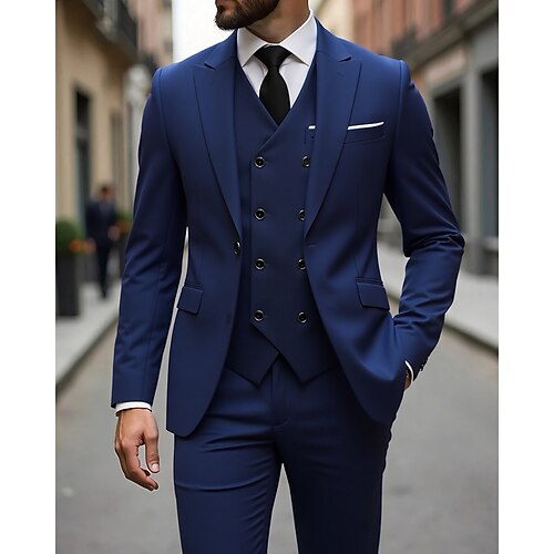 Herren Blazer Weste Anzughose Blazer Anzüge Geschäft Cocktailparty Hochzeitsfeier 3 Stück Mode Lässig Frühling Herbst Polyester Einfach Tasche Knöpfe Bequem Doppelreihig Blazer Blau Dunkelgrau