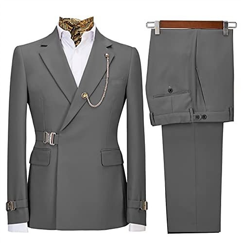 Herren Blazer Anzughose Blazer Anzüge Geschäft Cocktailparty Hochzeitsfeier 2 Stück Mode Lässig Frühling Herbst Polyester Farbblock Tasche Knöpfe Bequem Einreihig Blazer Dunkelgrau Schwarz Wei