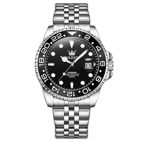 olevs 3620 orologio da uomo in acciaio inossidabile business doppio calendario orologio al quarzo impermeabile marchio di lusso orologio da uomo con diamanti