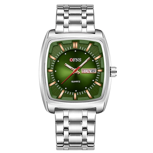 Orologio da polso da uomo al quarzo di marca OFNS, sportivo, alla moda, da lavoro, luminoso, con calendario, data, settimana, impermeabile, in acciaio e gel di silicone.