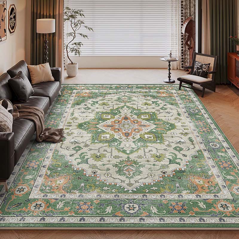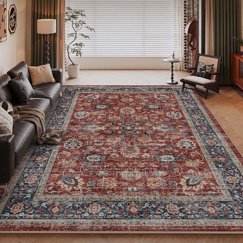 Vintage Area Rug For Living Room And Bedroom Thick Loop Velvet Soft Non-Slip Washable Carpet Waterproof Stain Resistant Easy Clean Black Retro Floor Mat Home Decor