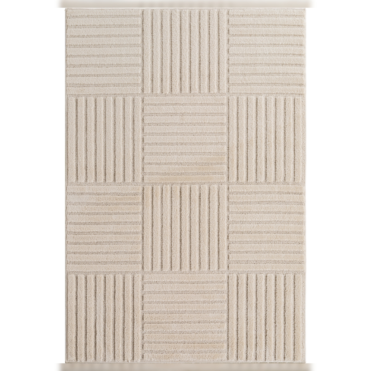 Carpetsale24 In-& Outdoor Teppich Wetterfest, Beige 120x170 cm, Skandinavische Design, Hoch-Tief-Effekt, für Balkon, Terasse, Küche oder Wohnzimmer