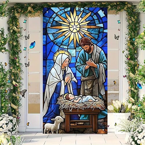 Compleanno Poster Copertura della porta Banner per esterni Vetro colorato Chiesa Carino Medievale 3D Da serata Dormitorio Stanza per adolescenti Dormitorio universitario Ragazzi Man Cave Frat Bedroom