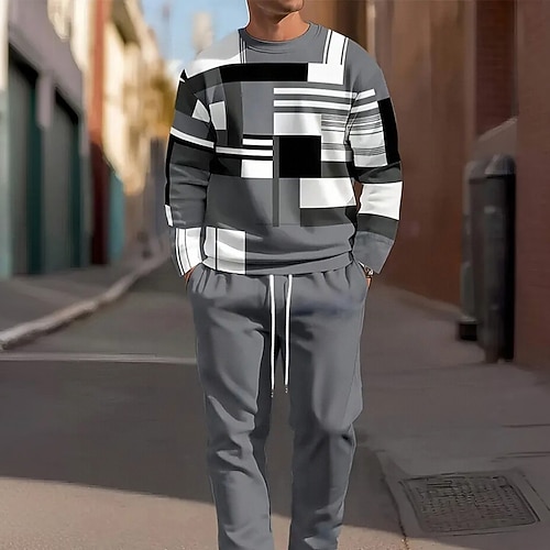 Per uomo Tuta Da Ginnastica Set di felpe Pop art Fantasia geometrica 2 pezzi Stampa Sportivo Informale Sport Stampa 3D Essenziale Streetwear Abbigliamento sportivo Abbigliamento Felpe con cappuccio