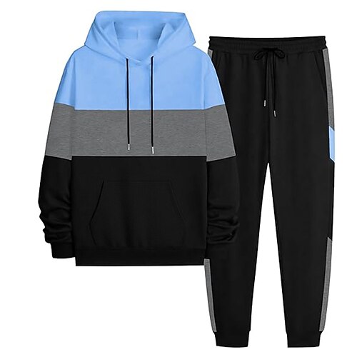Per uomo Blocco di colori 2 pezzi Set di felpe 3D Tuta Felpa con Cappuccio Manica Lunga Pantaloni lunghi Con Cappuccio Casual Quotidiano Athleisure Stampa 3D Primavera Autunno Inverno Nero Rosa Blu