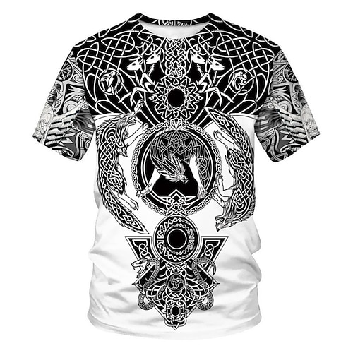 Stampa 3D Corte T-shirt Tatuaggio vichingo Grafico per Per uomo Adulti Stampa 3D per Carnevale Mascherata Casual Quotidiano