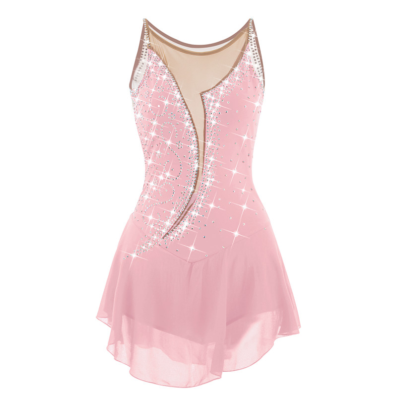 Figure Skating Dress Women's Girls' Ice Skating Dress Black White Pink Open Back Spandex High Elasticity Training Competition Skating Wear Crystal / Rhinestone Sleeveless Ice Skating Figure Skating