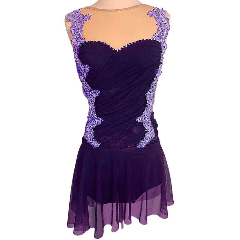 Figure Skating Dress Women's Girls' Ice Skating Dress Yan pink Dark Purple Light Purple Open Back Mesh Spandex High Elasticity Competition Skating Wear Handmade Crystal / Rhinestone Sleeveless Figure