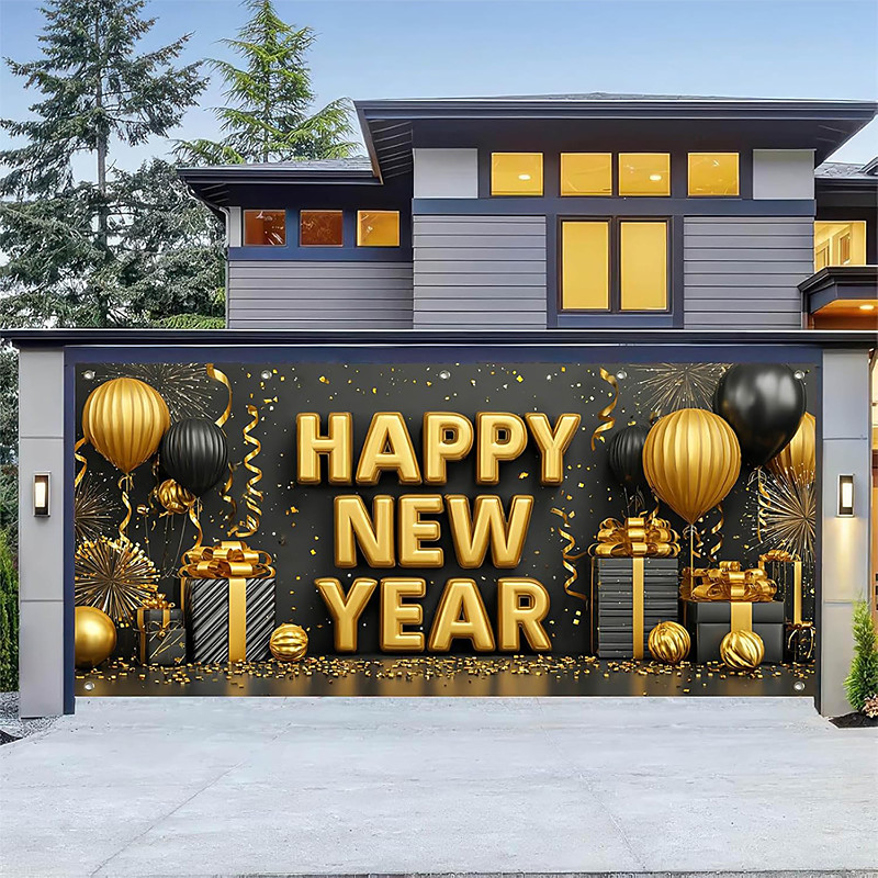 New Year Tapestry Garage Door Cover Large Hanging Backdrop Happy New Year 2026 Fireworks Cute 3D Party Outdoor Holiday Shooting Backgrounds Yard Home Decor