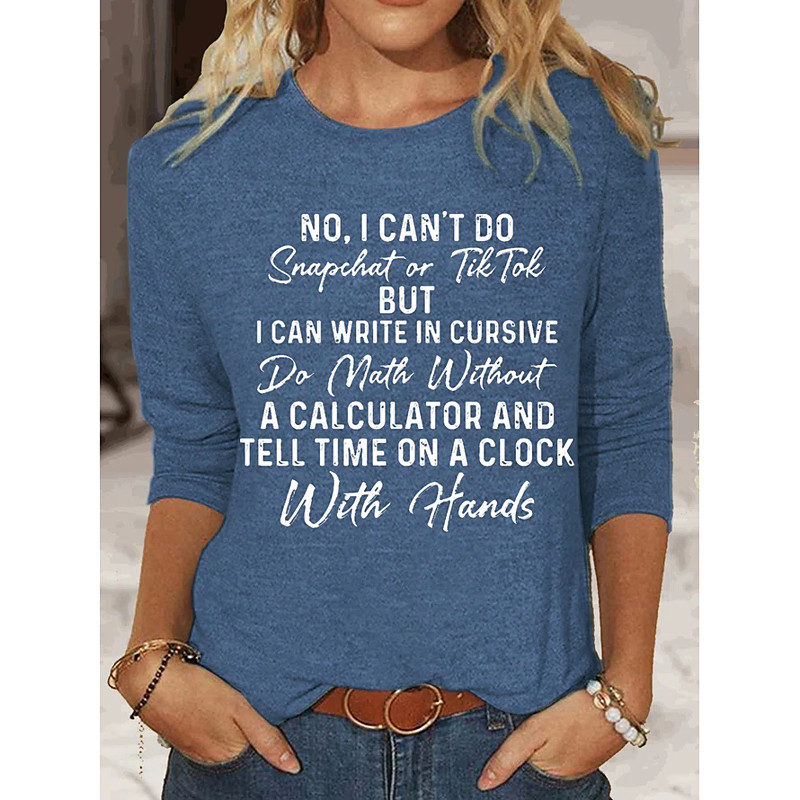 Women's T shirt Long Sleeve Letter Behavior Fashion Long Sleeve Crew Neck Regular Tops Daily Print Black Pink Blue Green Khaki Spring Fall Spring, Fall, Winter, Prefall