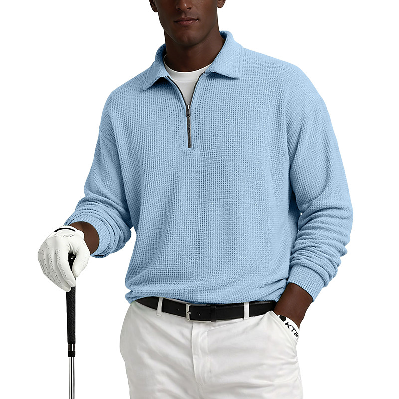 Men's Waffle Polo Shirts Textured Casual Quarter Zip Long Sleeve Fashion Modern Solid Color Plain Knitted Spring Spring Fall All Seasons Regular Fit Light Green Navy Blue Grey Light Blue Waffle