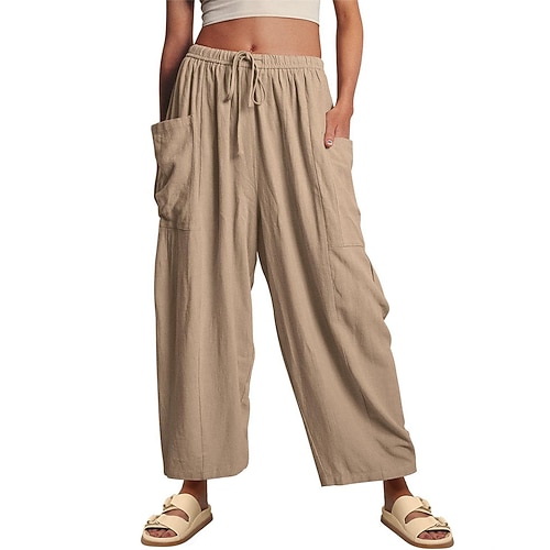 Per donna Gamba larga Pantaloni in cotone e lino Pantaloni Corti Moda Streetwear Semplice Lunghezza alla caviglia Vita Alta Semplice Tasca Taglio alto Gamba Dritta Comodità Traspirabilità Morbido