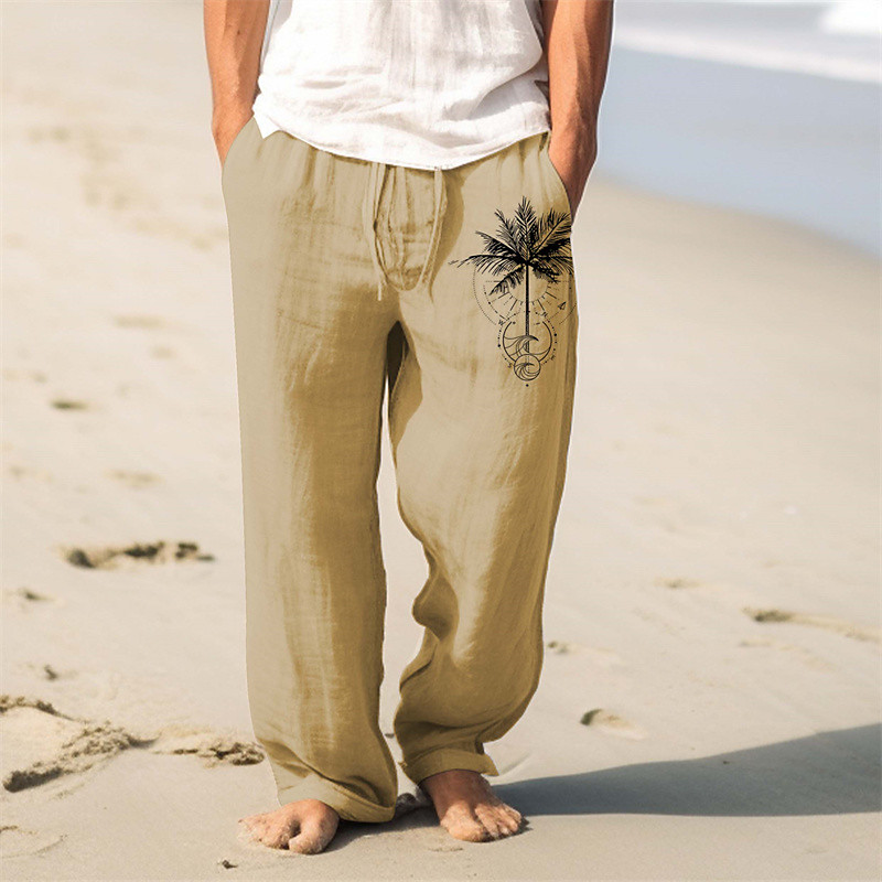 Men's Palm Tree Linen Pants Pants Trousers Baggy Pants Mid Waist Vintage Outdoor Daily Wear Streetwear Fall Winter Black Blue Green