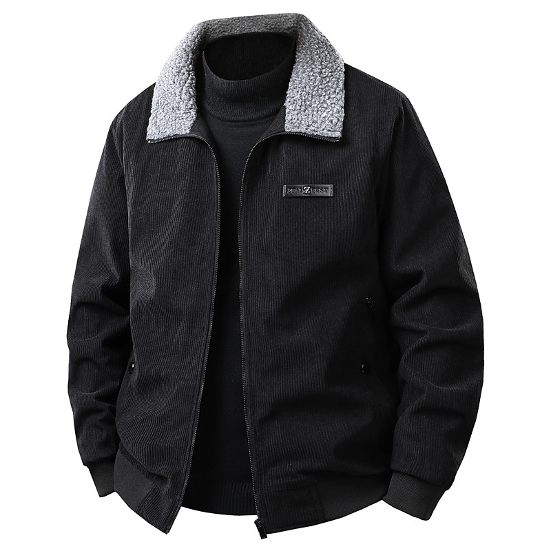 Men's Corduroy Jacket Fleece Jacket Formal Home Pocket Fleece Collar Fall Winter Solid Color Vintage Neutral Collar Regular Black Brown Green Grey Jacket