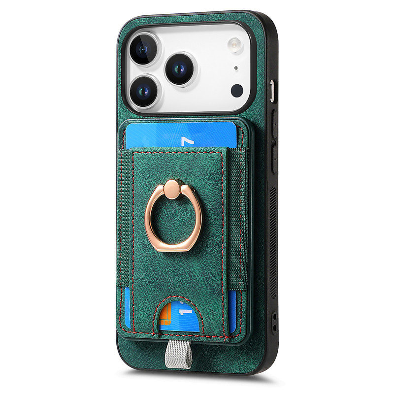 Phone Case For iPhone 17 Pro Max 17 Air Back Cover with Stand Holder Magnetic Card Slot Retro TPU Canvas