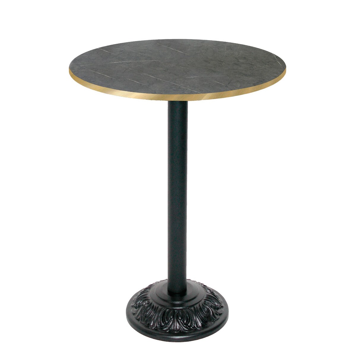 Restootab Stehtisch Bistrot-Stil Ø70cm - Modell Marquina mit messingfarbenen Kanten