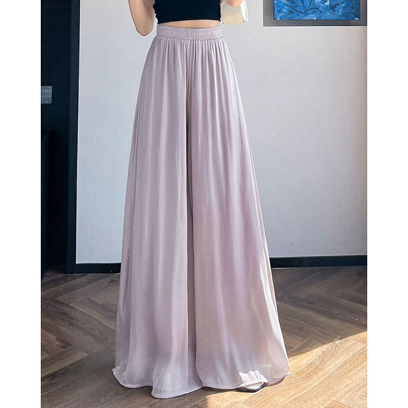 Women's Wide Leg Chinos Vacation Streetwear Casual Full Length Medium Waist Plain Elastic Waistband Comfy Micro-elastic Daily Outdoor Street Cream Violet Summer Spring Regular Fit