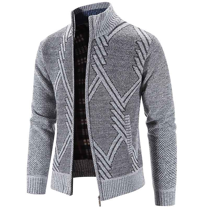 Men's Cardigan Sweater Dress Sweater Ribbed Knit Regular Knitted Stripe Standing Collar Warm Ups Modern Contemporary Daily Wear Going out Clothing Apparel Fall Winter Blue Light Grey S M L