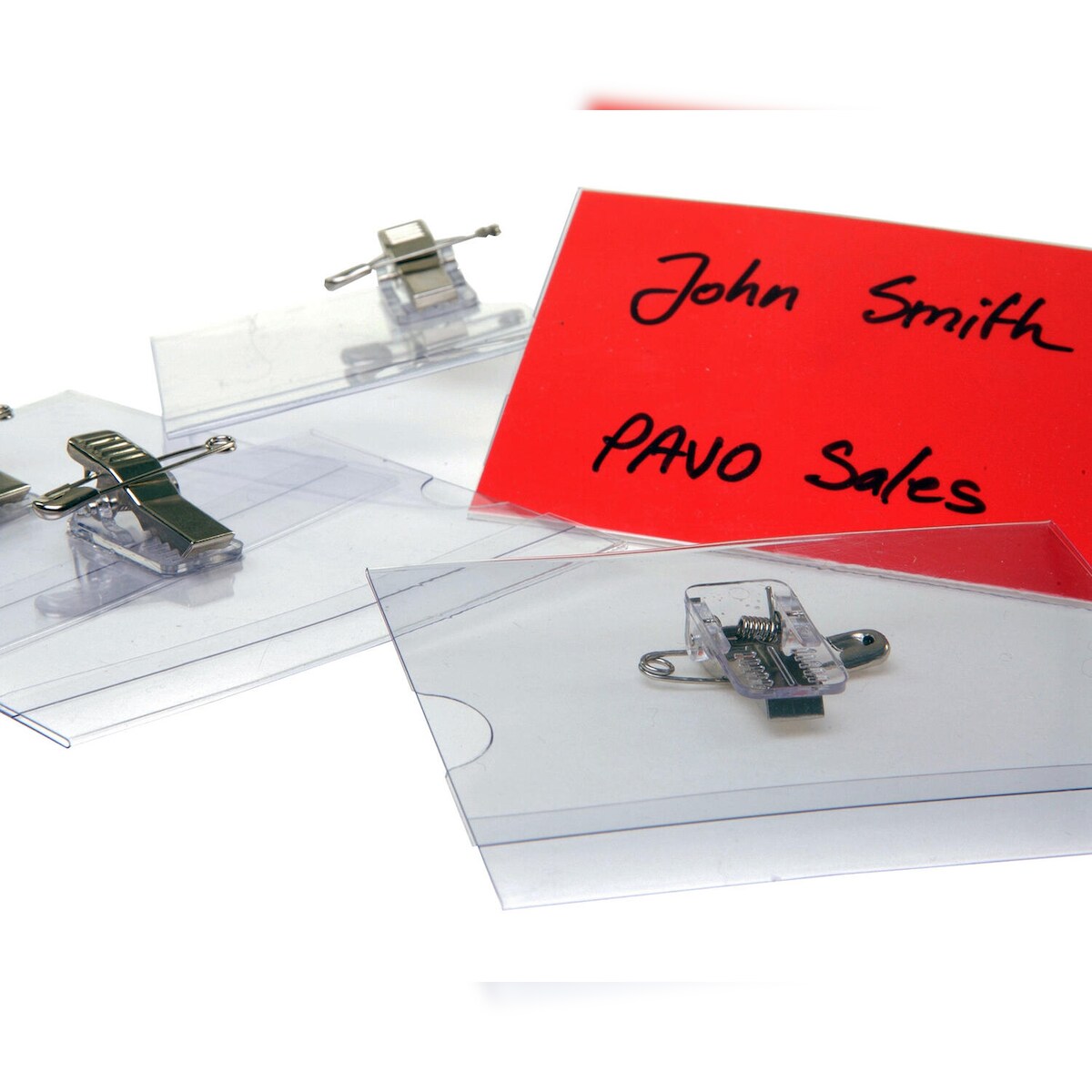 PAVO 250x Namensschild mit Kombiklemme Sicherheitsnadel 54x90mm inkl. Einleger