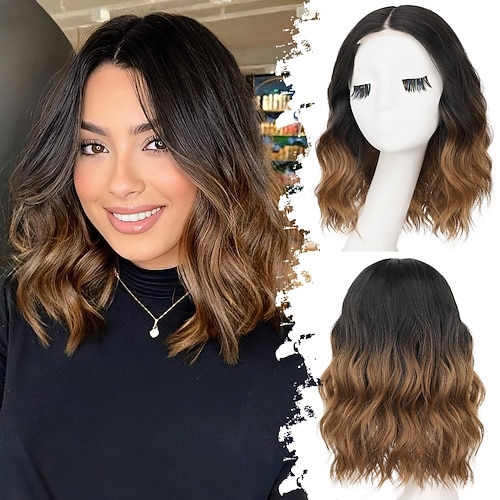 Kurze, gewellte Perücke für Frauen mit Spitzenhaaransatz im Bob-Stil, synthetisch, hitzebeständig – natürliches Aussehen für die alltägliche Frisur